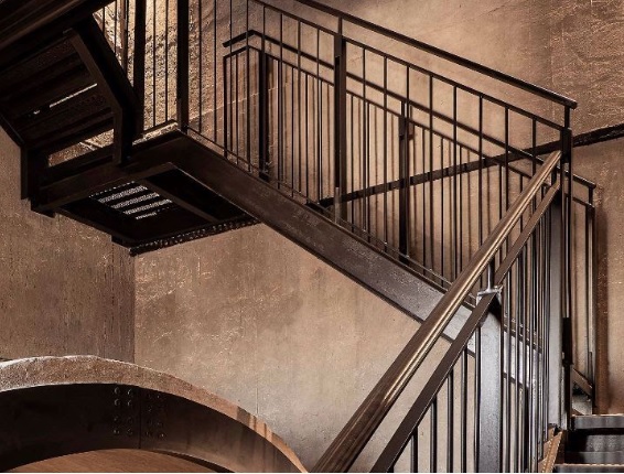 armonia un elemento nuovo e moderno come la scala in una torre storica simbolo